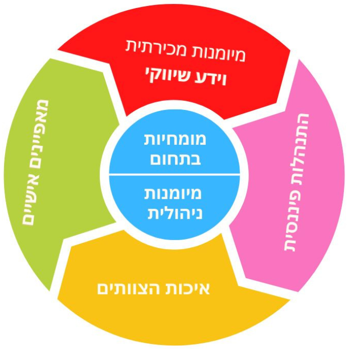 המומחיות היא המרכיב העוצמתי ביותר במודל, ומתייחסת למקצוענות של בית העסק. מעטים יסכימו 'להתגלח על זקן' ההתנסות של בית העסק. המומחיות היא הזרקור של בית העסק, שמשליך על המוניטין, ובעקבותיו נוצרים גם הביקושים. כשצרכן קיבל את המענה שביקש לעצמו, הוא ירוץ לספר לחברים". פיתוח המומחיות משיגים באמצעות לימודים, שילוב טכנולוגיה חדשה, התנסויות בפרויקטים חדשים, התעדכנות מהזירה. לומדים ומשתפרים כל הזמן, ודואגים לקיים תנועה שבה כל פעם אנחנו טובים ממה שהיינו קודם לכן.